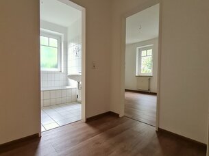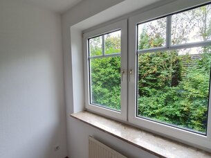 Einziehen und wohlfühlen, das ist der 1. Gedanke beim Betreten Ihrer renovierten, lichtdurchfluteten 3 Zimmer Wohnung incl. großem Balkon. Durch den Windfang, von diesem links das hell geflieste Gäste-WC abgeht, gelangen Sie direkt in das Herzstück Ihrer Wohlfühloase! Hier befindet sich der geräumige, helle Wohn,- Essbereich mit Zugang zum überdachten Balkon und einer Menge Platz für ein modernes Wohnkonzept. Von hier aus geht der Flur ab, der Ihnen Zugang zum Tageslichtbadezimmer mit Badewanne, Schlafzimmer mit Zugang zum Balkon und Zugang zum Kinderzimmer, mit Blick ins Grüne gewährt. Die gesamte Aufteilung ist durchdacht und familienfreundlich.