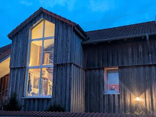 Die gesamte Fassade wurde im Jahr 2006 mit einer hinterlüfteten, wärmegedämmten Holzverschalung, mit 26,5 cm, wovon 14 cm auf die Dämmung und 12,5 cm auf die Konstruktion entfallen, versehen. Die Fenster sind 3-fach verglast. Die Wasserversorgung erfolgt über ein Hauswasserwerk ( kein Trinkwasser! ), die Entsorgung des Wassers erfolgt über eine Kläranlage, diese befindet sich im hinteren Teil des Gartens.